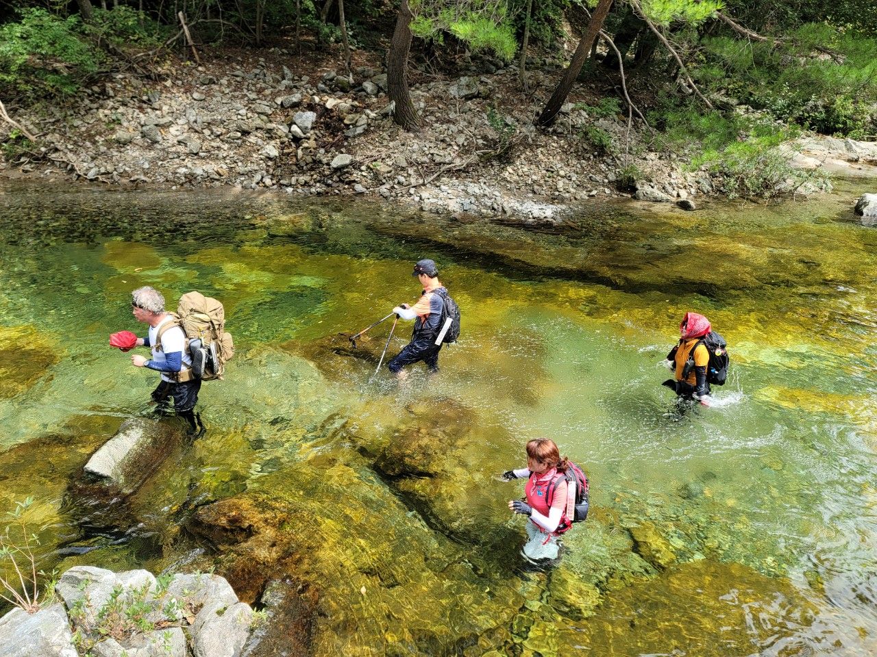 - 정해진 길이 없고 계곡물을 직접 밟으며 걷는 독특한 경험이 가능합니다. 이 구간에서 물 깊이가 허벅지까지 올라오는 경우도 있어 아쿠아슈즈 또는 두꺼운 등산 샌들 착용은 필수입니다.